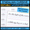 These desk strips have a cursive alphabet, the student's name in cursive (editable), and a picture helping the student to correctly position his paper for handwriting.